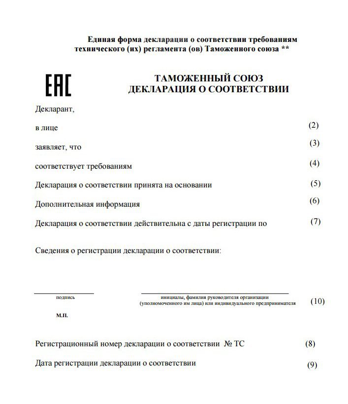 Декларация соответствия таможенного союза