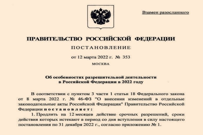 俄罗斯联邦政府令(2022年3月12日第353号) ∙ 正式出版法令 ∙ 官方法律信息互联网门户网站