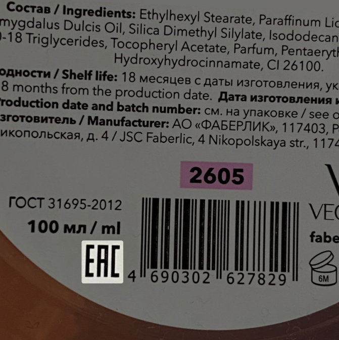 例如,这是身体乳霜包装上的EAC标志的样子